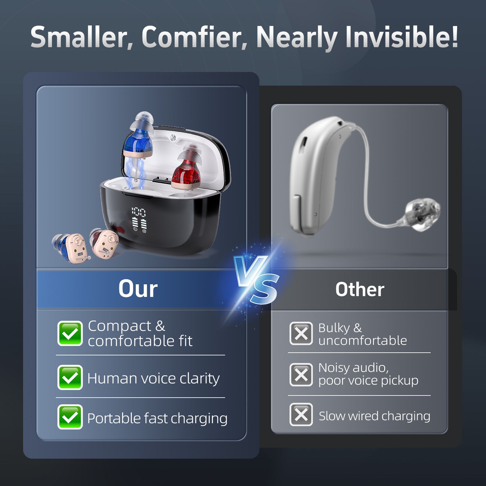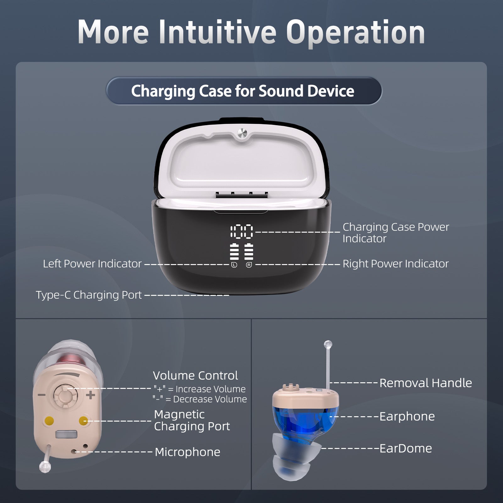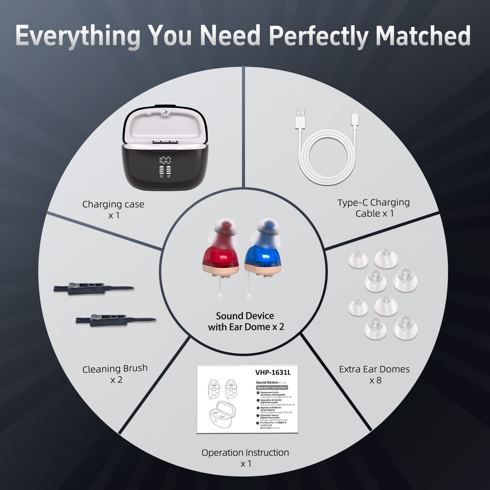Delmicure VHP-1631L Hearing Aids, Rechargeable Hearing Amplifiers with Portable Charging Case, Binaural (Beige)
