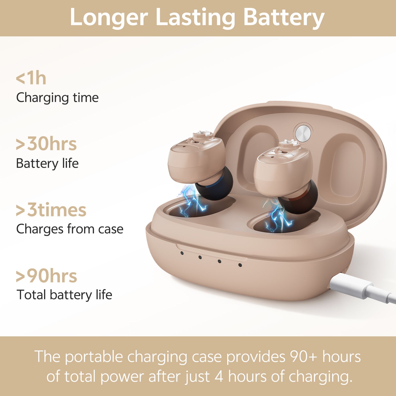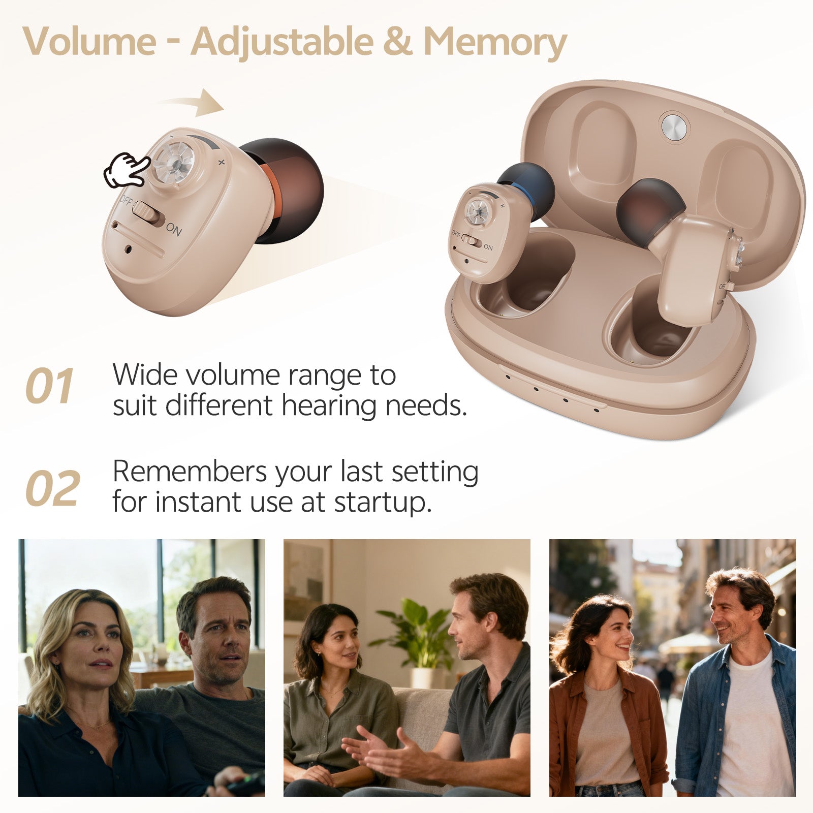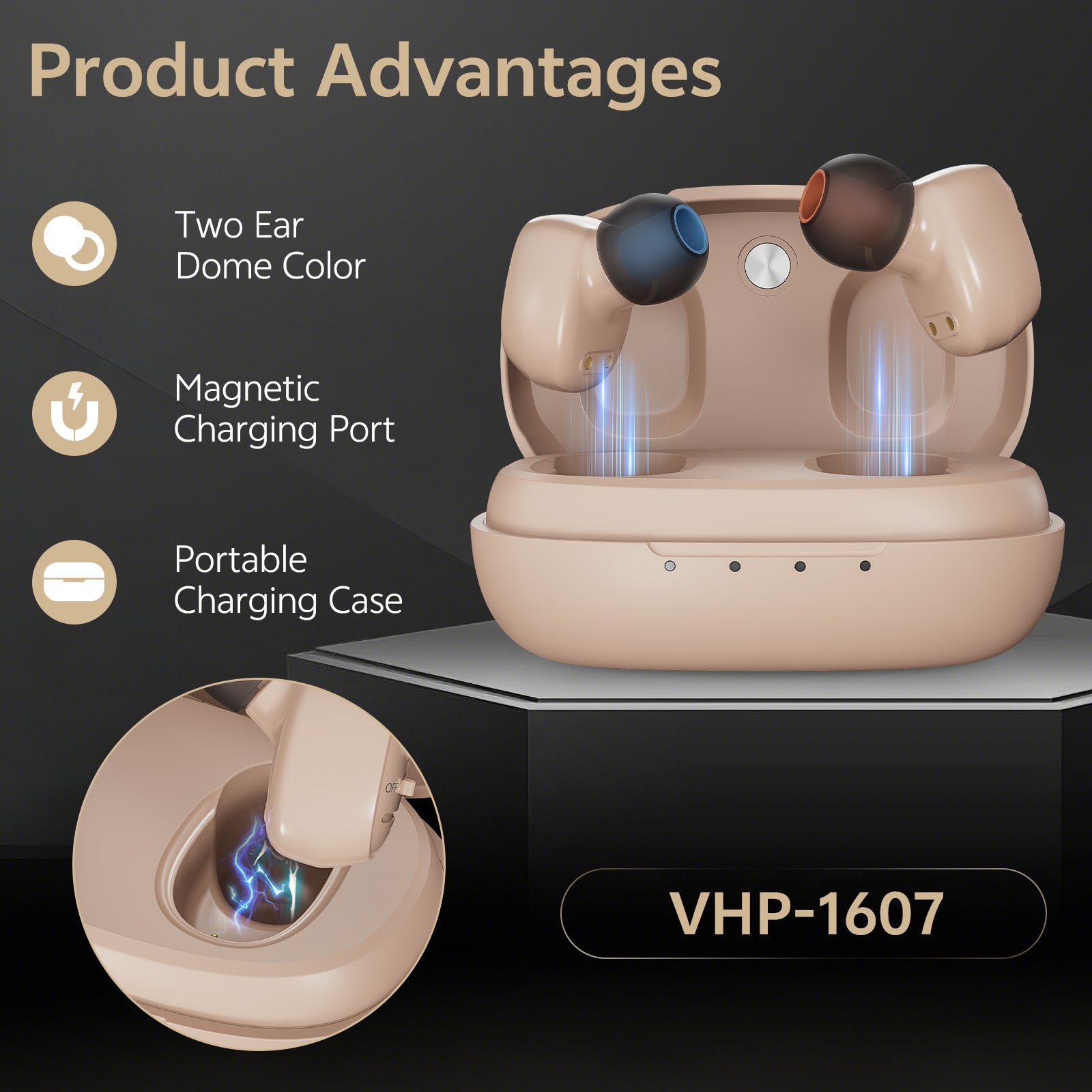 Delmicure VHP-1607 Personal Sound Device with Portable Charging Case – Binaural (Beige)